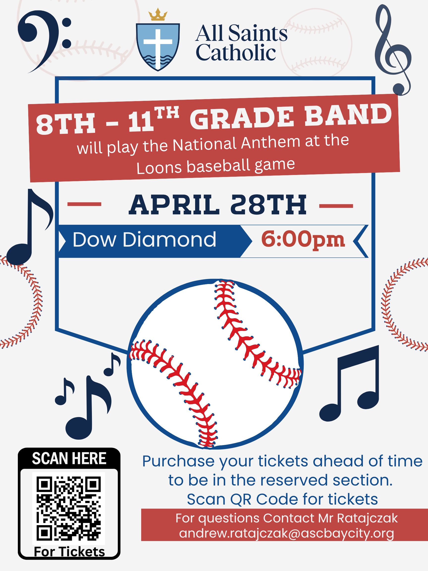 We are very excited to share that our 8-11th grade band has been invited to perform the National Anthem at the Loons baseball game on Tuesday, April 28th.