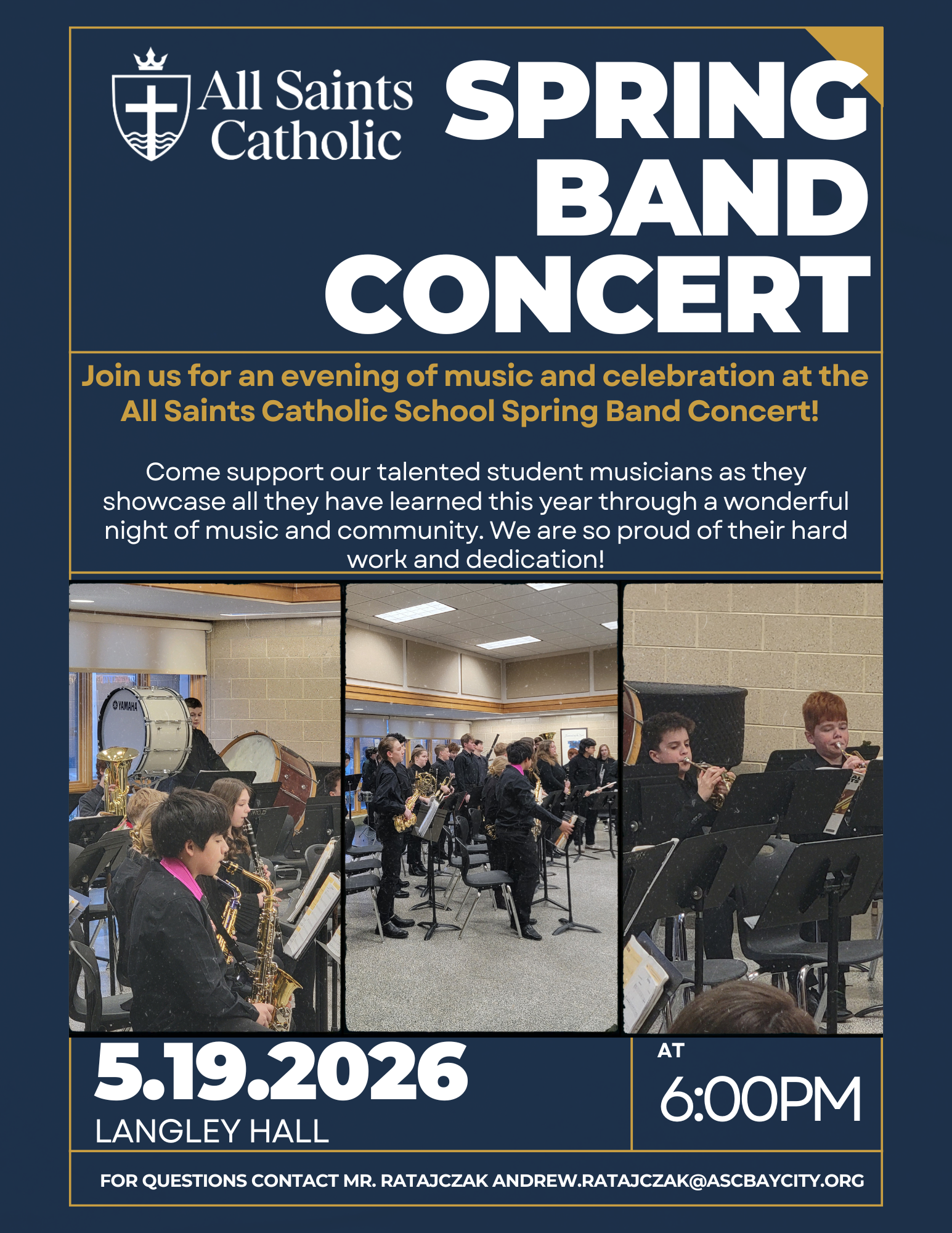Join us for an evening of music and celebration at the All Saints Catholic School Spring Band Concert! 🎶🌸