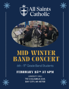 Mid-Winter Band Concert will take place on Wednesday, February 25th at 6:00 PM in Langley Hall. We are looking forward to sharing the students’ hard work with you! Student Call Time:All 6th–11th grade band students should