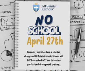 There has been a schedule change and All Saints Catholic Schools (Elementary, Middle School and High School) will NOT have school on 4/27. This is due to a teacher professional